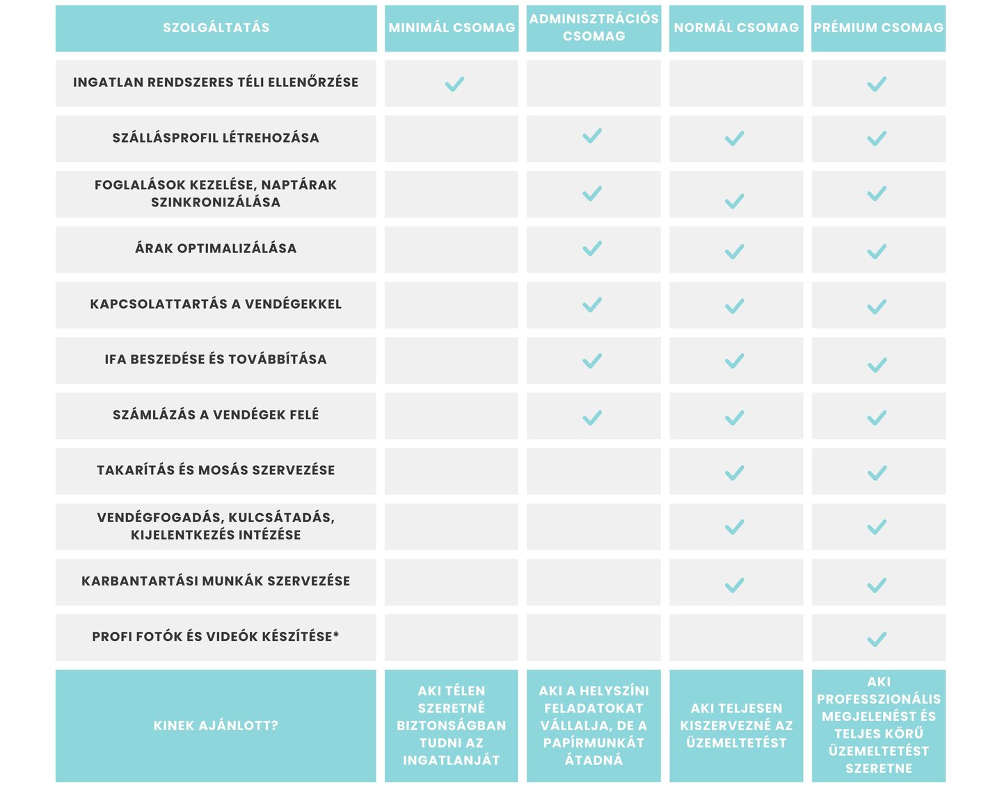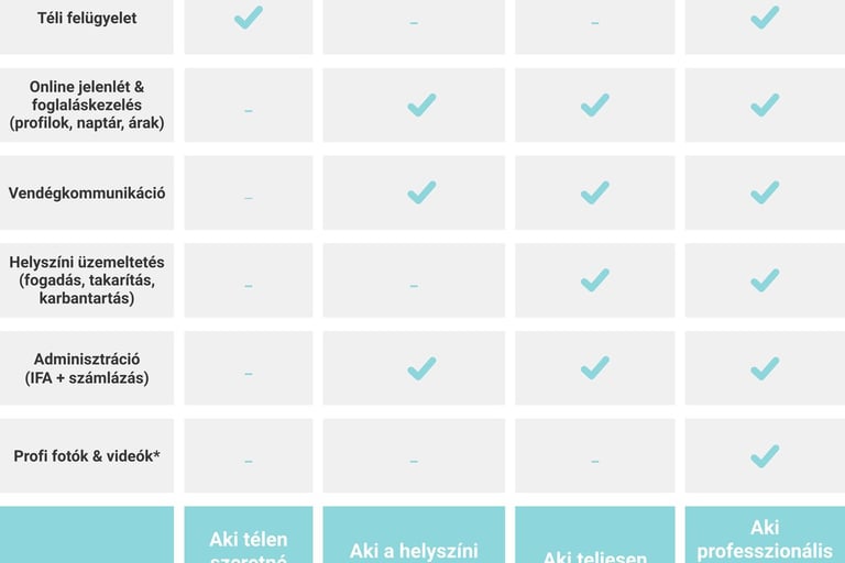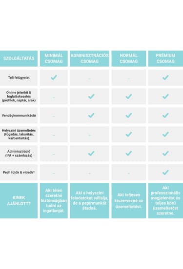 A vendégek érkezését, távozását, a takarítást, karbantartást és minden adminisztrációt vállalok.