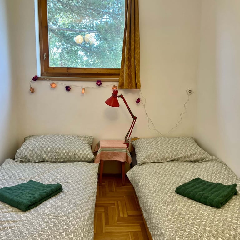 Az 57 m²-es ikerház kényelmes elrendezésű: a földszinten nappali, konyha és fürdőszoba található, az emeleten pedig két hálószoba biztosít pihenési lehetőséget. A ház alapvetően 4 fő számára ideális, de pótágyakkal akár 6 vendég elszállásolása is megoldható.